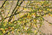 柠条锦鸡儿是豆科锦鸡儿属植物,灌木,有时小乔状,高1-4米;老枝金黄色,有光泽;嫩枝被白色柔毛。羽状复叶有6-8对小叶;托叶宿存;叶轴脱落;小叶披针形或狭长圆形,先端锐尖或稍钝,有刺尖,灰绿色。花梗…全部>>