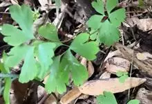 天葵 Makino)是毛茛科天葵属多年生小草本植物,块根长达2厘米,外皮棕黑色。茎高可达32厘米,基生叶为掌状三出复叶;叶片轮廓卵圆形至肾形,小叶扇状菱形或倒卵状菱形,两面均无毛;叶柄长可达12厘米,…全部>>