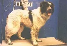 圣伯纳犬,别名巴里汉德,属于大型工作犬,肩高约65~90厘米,体重约50~90千克。圣伯纳犬身体强壮,被毛红褐色和白色相间,头圆而宽大。颈部强壮,胸宽深,背直。前肢长直,腕关节略前倾,后肢腿骨粗壮,…全部>>