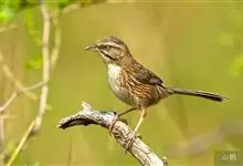 白颊噪鹛是雀形目噪鹛科噪鹛属鸟类,又称土画眉、小画眉、小噪鹃。成鸟额至头顶栗褐色,长眉纹、眼先和颊纹棕白色,眼后至耳羽深褐色,…全部>>