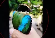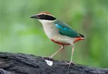 绿胸八色鸫:是雀形目八色鸫科的鸟类,共有12个亚种。体长为16-18厘米,体重65-69克。体型圆胖,尾短,腿长。头黑,上体绿色,两翼深色而具白色斑纹,头顶至后枕深褐,胸及腹部苹果绿,臀亮红。…全部>>