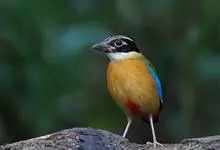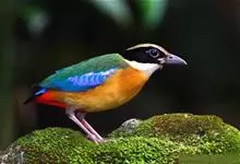蓝翅八色鸫是雀形目八色鸫科的鸟类。体长17-20厘米,体重类约48-70克,体型圆胖,尾短,腿长,以身体具有红、绿、蓝、白、黑、黄、褐、栗等鲜艳夺目,丰富艳丽的色彩而得名,是很有观赏价值的鸟类。主要…全部>>