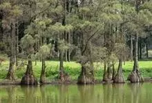 池杉 Croom)是杉科、落羽杉属植物,亦称池柏,沼落羽松。落叶乔木,高可达25米。主干挺直,树冠尖塔形。树干基部膨大,枝条向上形成狭窄的树冠,尖塔形,形状优美;叶钻形在枝上螺旋伸展;球果圆球形。…全部>>