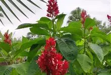 一串红,又称爆仗红、象牙红,为唇形科鼠尾草属植物。花序修长,色红鲜艳,花期又长,适应性强,为中国城市和园林中最普遍栽培的草本花卉。原产巴西、南美洲。喜温暖和阳光充足环境。不耐寒,耐半阴,忌霜雪和高温,…全部>>