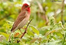 红眉朱雀:体长15厘米,是一种中等体型的朱雀。上体褐色斑驳,眉纹、脸颊、胸及腰淡紫粉,臀近白。雌鸟无粉色,但具明显的皮黄色眉纹。雄雌两性均甚似体型较小的曙红朱雀,但嘴较粗厚且尾的比例较长。…全部>>