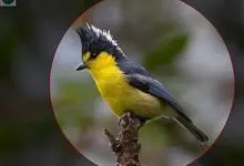 金胸雀鹛是莺科、雀鹛属小型鸟类,体长10-11厘米。头黑色,头顶中央有一道白色中央冠纹,颊和耳羽亦为白色,在黑色的头部极为醒目。上体深灰沾绿。两翅黑色,外侧飞羽有黄色外缘和白色端斑;尾凸状、黑色。…全部>>