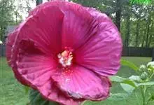芙蓉葵是锦葵科木槿属植物,又名草芙蓉、大花秋葵,原产于北美。落叶灌木状。叶大、广卵形,叶柄、叶背密生灰色星状毛。花大,单生于叶腋,有白、粉、红、紫等色。喜阳、略耐阴,宜温暖湿润气候,忌干旱,耐水湿,…全部>>