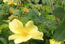 黄刺玫是蔷薇科蔷薇属的直立灌木。高2-3米;枝粗壮,密集;小叶片呈宽卵形或近圆形,边缘有圆钝锯齿,上面无毛;叶轴、叶柄有稀疏柔毛和小皮刺;花单生于叶腋,重瓣或半重瓣,呈黄色;花梗长1-1.5厘米,无毛,…全部>>