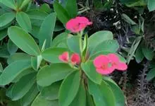虎刺梅:别称铁海棠,是蔓生灌木植物。茎多分枝,长60-100厘米,直径5-10毫米,具纵棱,密生硬而尖的锥状刺,刺长1-1.5厘米,直径0.5-1.0 毫米,常呈3-5列排列于棱脊上,呈旋转。叶互生…全部>>