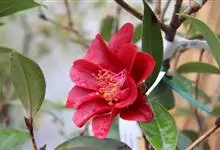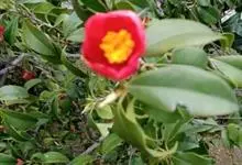 滇山茶:灌木至小乔木,有时高达15米,嫩枝无毛。叶阔椭圆形,上面干后深绿色,发亮,下面深褐色,无毛,侧脉6-7对,边缘有细锯齿。花顶生,红色,直径10厘米,无柄;苞片及萼片10-11片,花瓣红色,…全部>>