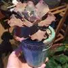 高砂之翁是景天科,拟石莲花属的多肉植物。特征是其边缘呈大波浪卷形的宽大叶片,颜色随光照变化从蓝紫到橙红变幻不定,是一种具有别样魅力的拟石莲品种。是杂交种而非栽培变种。最早在日本被培育。…全部>>