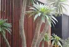 非洲霸王树,是夹竹桃科棒锤树属多肉植物。非洲霸王树茎干肥大挺拔,圆柱形、褐绿色;茎顶丛生翠绿色长广线形叶片,尖头,叶柄及叶脉淡绿色;花白色,中央黄色,有清香;开花期多在春季至早夏。…全部>>