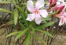 夹竹桃,又名红花夹竹桃、欧洲夹竹桃,是夹竹桃科夹竹桃属的一种常绿直立大灌木,枝条灰绿色,含水液。叶披针形,3叶轮生。聚伞花序顶生,花冠粉红至深红色,花冠漏斗状,有特殊香味。蓇葖果,圆柱形。种子长圆形,…全部>>