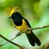 冕雀:共有4个亚种。体长20-21厘米,体重34-49克。具蓬松的黄色长型冠羽。雌鸟似雄鸟,但喉及胸深橄榄黄色,上体沾橄榄色。不会被误认的体大的黄色及黑色山雀。混群栖于原始林及次生林的林冠层,…全部>>