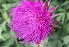 魁蓟菊科蓟属植物,多年生草本,高达1米,茎枝被长毛,基部和下部茎生叶长椭圆形或倒披针状长椭圆形,羽状深裂,侧裂片8-12对,头状花序排成伞房花序;总苞钟状,径达4厘米,总苞片8层,瘦果灰黑色,…全部>>