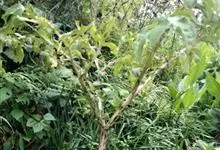 魔芋是天南星科、魔芋属植物,块茎扁球形,直径7.5~25厘米,顶部中央多少下凹,暗红褐色。叶柄长45~150厘米,基部粗3~5厘米。花序柄长50~70厘米,粗1.5~2厘米,色泽同叶柄。…全部>>