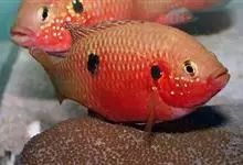 红魔鬼鱼(火鹤鱼、红魔鬼)鲈形目 > 慈鲷科 > 双冠丽鱼属 > 红魔鬼鱼
