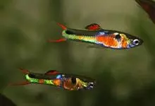 孔雀花鳉 ,俗名孔雀鱼,也称为凤尾鱼、彩虹花鳉、虹鳉、古比鱼等,是花鳉科花鳉属的一种热带鱼,雌雄鱼的体型和色彩差别较大,成年雄鱼身体瘦小,体长3-4厘米,体色绚烂多彩、体型优美;成年雌鱼体长5厘米…全部>>