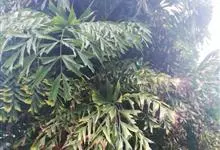 鱼尾葵,棕榈科鱼尾葵属植物。鱼尾葵幼叶近革质,老叶厚革质;羽片互生,罕见顶部的近对生,最上部的羽片大,呈樱形,侧边的羽片小,菱形似鱼尾。外缘笔直,花聚生3朵,花瓣黄色;萼片宽圆形;花药线形,黄色,…全部>>