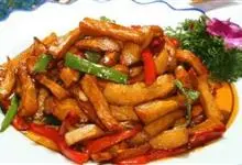 酱扒茄子是一道特色传统佳肴。因为大酱里有淀粉、茄子上也有淀粉,所以最后不用水淀粉勾芡,汤汁也很浓稠;蒜一定要分两次放,特别是最后放的蒜末可谓是给这道菜起了画龙点睛的作用。全部>>