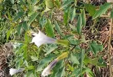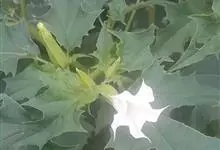 曼陀罗,茄科曼陀罗属一年生大型草本植物,全株光滑。有臭气;叶呈广卯形,边缘具不规则波状浅齿裂;花单生于枝杖间或叶腋,直立,有短梗;花萼是筒状裂片三角形,颜色为白色或淡紫色;果实为蒴果卵状,…全部>>