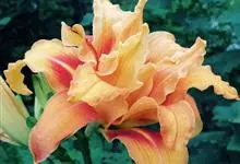 重瓣萱草 L. var. kwanso Regel),百合科萱草属植物。根近肉质,中下部有纺锤状膨大;花桔黄色,花被裂片多数,雌雄蕊发育不全。花被管较粗短,长2-3厘米;内花被裂片宽2-3厘米。…全部>>