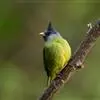 凤头雀嘴鹎:属小型鸟类,体长18-22厘米。嘴粗短、呈象牙色或乳黄色,前额和脸灰色,头顶黑色,有一朝前竖立的黑色羽冠。上体橄榄绿色,下体黄绿色,尾羽黄绿色具宽阔的黑褐色端斑。…全部>>