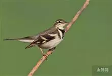 山鹡鸰:是中等体型的林鹡鸰,体长约17厘米,主要羽色为褐色及黑白色。头部和上体橄榄褐色,眉纹白色,从嘴基直达耳羽上方,下体白色,胸部具有两道黑色横斑纹,下面的横斑纹有时不连续。两翼黑褐色,…全部>>