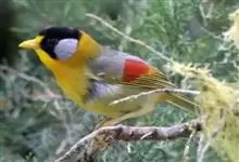 银耳相思鸟小型鸟类,体长14~18厘米。头顶黑色,耳羽银灰色,前额橙黄色;外侧飞羽橙黄色,基部朱红色,极为鲜艳、醒目。尾圆形,尾上、尾下覆羽朱红色,尾暗灰褐色,外侧尾羽橙黄色,其余上体橄榄绿或橄榄黄色。…全部>>