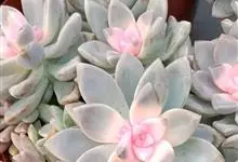 紫珍珠是景天科石莲花属的多年生肉质草本植物。植株中小型;叶片肉质,匙形,呈莲座状紧密排列;叶片粉紫色,叶缘呈粉白色,光照充足时颜色亮丽,不足时叶色会呈现深绿色或灰绿色,叶面光滑,被轻微白粉,…全部>>