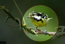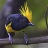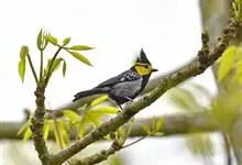 冕雀:共有4个亚种。体长20-21厘米,体重34-49克。具蓬松的黄色长型冠羽。雌鸟似雄鸟,但喉及胸深橄榄黄色,上体沾橄榄色。不会被误认的体大的黄色及黑色山雀。混群栖于原始林及次生林的林冠层,…全部>>