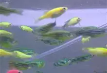 斑马鱼是鲤形目鲤科短担尼鱼属的鱼类,又名蓝条鱼、花条鱼、斑马担尼鱼。体呈纺锤形。背部橄榄色,体侧从鳃盖后直伸到尾末有数条银蓝色纵纹,臀鳍部也有与体色相似的纵纹,尾鳍长而呈叉形。雄鱼柠檬色纵纹,…全部>>