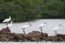 琵鹭,为6种长腿涉禽的统称。主要以虾、蟹、水生昆虫、昆虫幼虫、蠕虫、甲壳类、软体动物、蛙、蝌蚪、蜥蜴、小鱼等小型脊椎动物和无脊椎动物为食,偶尔也吃少量植物性食物。…全部>>