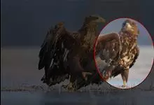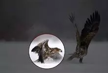金雕:属于鹰科、雕属的猛禽。体长76-102厘米,翼展达2.3米,体重2-6.5千克。雌雄同色。未成年时,头、颈黄棕色;两翼飞羽除了最外侧三枚外基部均缀有白色,其余身体部分暗褐色;羽尾灰白色,…全部>>
