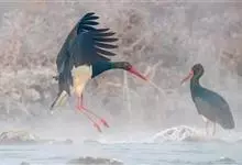 黑鹳是鹳形目鹳科鹳属鸟类,俗称乌鹳、钢鹳、老鹤。黑鹳头、颈和脊均呈黑褐色,故名黑鹳。黑鹳上体羽黑色、并带有绿紫色金属光泽,胸腹部羽白色;嘴、腿均红色;两性相似;成鸟嘴长而直,基部较粗,…全部>>