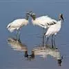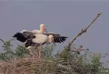 白鹳,是鹳形目鹳科鹳属鸟类。白鹳曾确定为3个亚种:指名亚种、中亚亚种和东方亚种。其体长约111厘米。嘴形直、粗厚而侧扁;体羽除飞羽黑色具铜绿色金属光泽外,余部均为白色;眼周裸区、脚、趾红色,嘴黑色。…全部>>