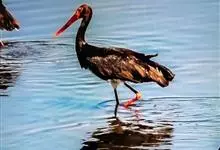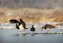 黑鹳是鹳形目鹳科鹳属鸟类,俗称乌鹳、钢鹳、老鹤。黑鹳头、颈和脊均呈黑褐色,故名黑鹳。黑鹳上体羽黑色、并带有绿紫色金属光泽,胸腹部羽白色;嘴、腿均红色;两性相似;成鸟嘴长而直,基部较粗,…全部>>
