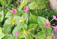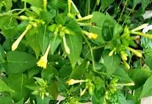 即紫茉莉,英文名:Four-o'clock,Marvel of Peru,为紫茉莉科、紫茉莉属多年生草本植物,一年生栽培。株高50~80cm。根粗壮,茎多分枝而散生。叶对生,卵形或心脏形。花数朵簇生…全部>>