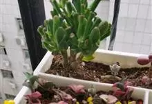 筒叶花月,是景天科青锁龙属的多年生草本植物。植株多分株,灌木状,茎较粗壮,圆柱形,表皮灰褐色;叶片肉质,互生,呈圆筒状,簇生于茎或分枝顶端,叶端呈斜截形,截面为椭圆形;花呈星状,淡白色;花期秋季。…全部>>