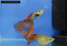 孔雀花鳉 ,俗名孔雀鱼,也称为凤尾鱼、彩虹花鳉、虹鳉、古比鱼等,是花鳉科花鳉属的一种热带鱼,雌雄鱼的体型和色彩差别较大,成年雄鱼身体瘦小,体长3-4厘米,体色绚烂多彩、体型优美;成年雌鱼体长5厘米…全部>>