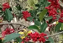 构骨叶冬青学名枸骨,又名猫儿刺、老虎刺、八角刺、鸟不宿、构骨、狗骨刺、猫儿香和老鼠树。常绿灌木或小乔木,高1-3米,二年枝褐色,三年生枝灰白色,叶片厚革质,花淡黄色,果球形,直径8-10毫米,成熟时…全部>>
