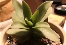 筒叶花月,是景天科青锁龙属的多年生草本植物。植株多分株,灌木状,茎较粗壮,圆柱形,表皮灰褐色;叶片肉质,互生,呈圆筒状,簇生于茎或分枝顶端,叶端呈斜截形,截面为椭圆形;花呈星状,淡白色;花期秋季。…全部>>
