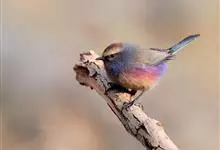 花彩雀莺:体长9-12厘米,是一种毛茸茸偏紫色的雀莺。顶冠棕色,眉纹白。尾长,羽毛松软。前额有一宽阔的眉纹淡黄色,头顶栗色或棕红色,有的具紫蓝色光泽。背灰色,腰和尾上覆羽辉紫蓝色,飞羽灰褐色。…全部>>
