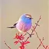 凤头雀莺:小型鸟类。体长9-10厘米,雄鸟呈毛茸茸的紫色和绛紫色,顶冠淡紫灰色,额及凤头白色,尾全蓝。雌鸟喉及上胸白,至臀部渐变成淡紫色,耳羽灰,…全部>>