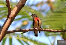 朱背啄花鸟:体重6-8克,体长81-97毫米。是一种小型的黑色及红色啄花鸟。雄鸟顶冠、背及腰猩红色,两翼、头侧及尾黑,两胁灰,下体余部白色。雌鸟上体橄榄色,腰及尾上覆羽猩红,尾黑。亚成鸟清灰色,嘴橘黄,…全部>>
