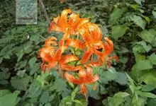 东北百合,别名卷莲花、老哇芋头、轮叶百合、伞蛋花、山丹花,为百合科、百合属多年生球根花卉。鳞茎卵圆形,白色,有节。苞片叶状,花淡橙红色,具紫红色斑点;花被片稍反卷,蒴果倒卵形,花期7-8月,果期9月,…全部>>