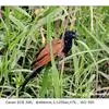 褐翅鸦鹃,是鹃形目鸦鹃科鸦鹃属的鸟类。褐翅鸦鹃的身体为黑色;头颈和胸带蓝紫色金属光泽并具黑亮的羽干纹,下胸至腹部泛金属绿光泽;两翼和肩部为棕栗色,外侧飞羽具暗色羽端,尾羽闪铜绿色光泽;虹膜赤红色,…全部>>