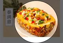 菠萝炒饭是将带皮菠萝纵切,用勺子将菠萝肉取出,切成小丁,与米饭、火腿、鸡蛋、新鲜蔬菜等一起在油锅中翻炒,…全部>>