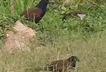 褐翅鸦鹃,是鹃形目鸦鹃科鸦鹃属的鸟类。褐翅鸦鹃的身体为黑色;头颈和胸带蓝紫色金属光泽并具黑亮的羽干纹,下胸至腹部泛金属绿光泽;两翼和肩部为棕栗色,外侧飞羽具暗色羽端,尾羽闪铜绿色光泽;虹膜赤红色,…全部>>