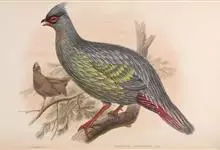 血雉雉科血雉属鸟类,别名血鸡、松花鸡,血雉的雄鸟大覆羽、尾下覆羽、尾上覆羽、脚、头侧、腊膜为红色,故称血雉。其别名甚多,各地皆异。在甘肃,因其胸侧和翅上覆羽沾绿,被称为“绿鸡”;因其羽毛形似柳叶,…全部>>